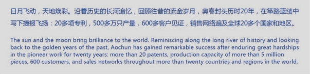 奧春注重人才的培養(yǎng)和企業(yè)文化的建設(shè)。以客戶為中心、保障股東權(quán)益、與員工共成長、積極回饋社會,努力打造一個充滿活力、責(zé)任感和凝聚力的企業(yè)。